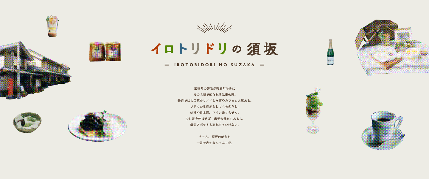 須坂市の魅力を引き出し、広く発信したいという依頼に対し、「イロトリドリの須坂」というコンセプトで、須坂市のさまざまな資源を発信していただきました。