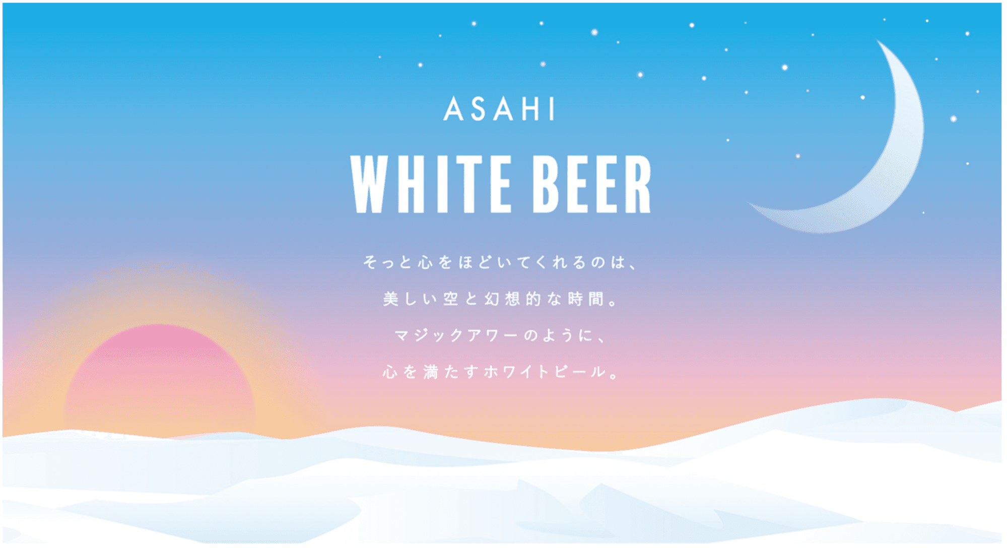 アサヒビール株式会社が展開する『ASAHI WHITE BEER』はマジックアワーのように、そっと心を満たすホワイトビールです。
