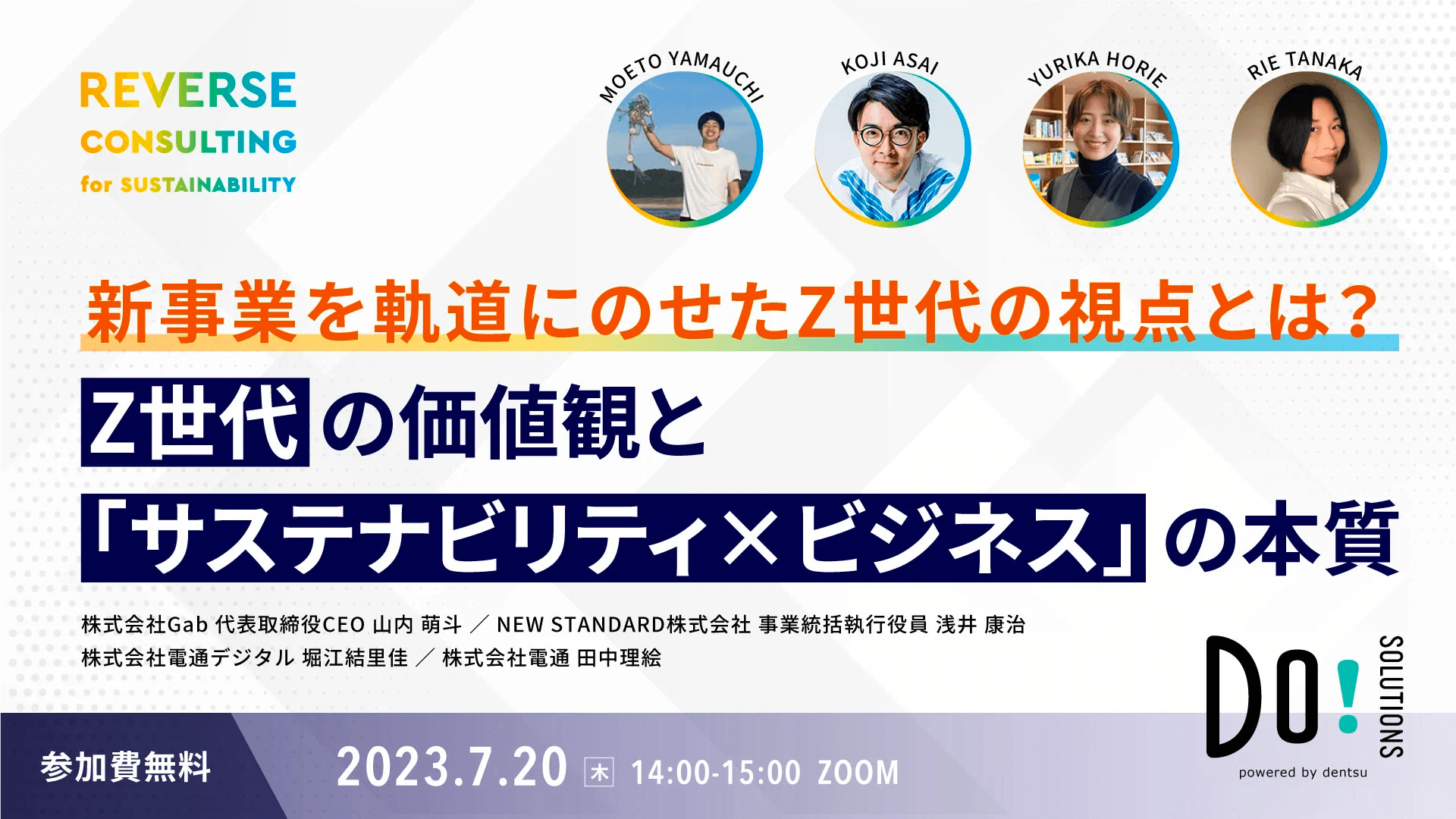 2023年7月20日(木)に開催されるDo!Solutionsウェビナー『新事業を軌道にのせたZ世代の視点とは?Z世代の価値観と「サステナビリティ×ビジネス」の本質』に、当社事業統括執行役員の浅井 康治がパネリストとして登壇します。