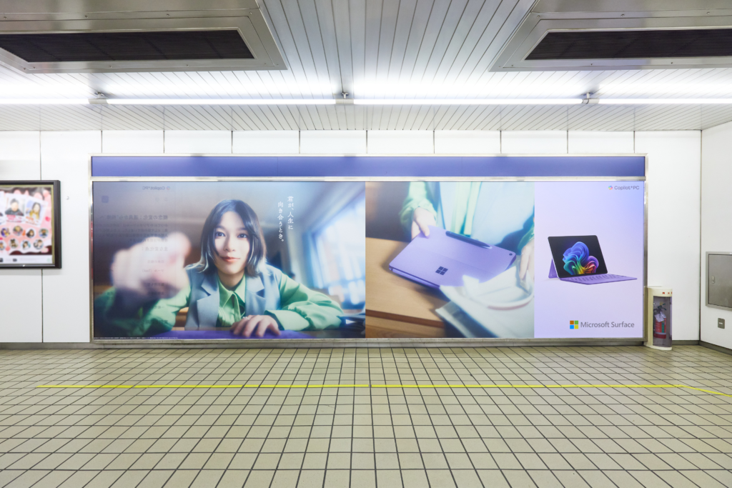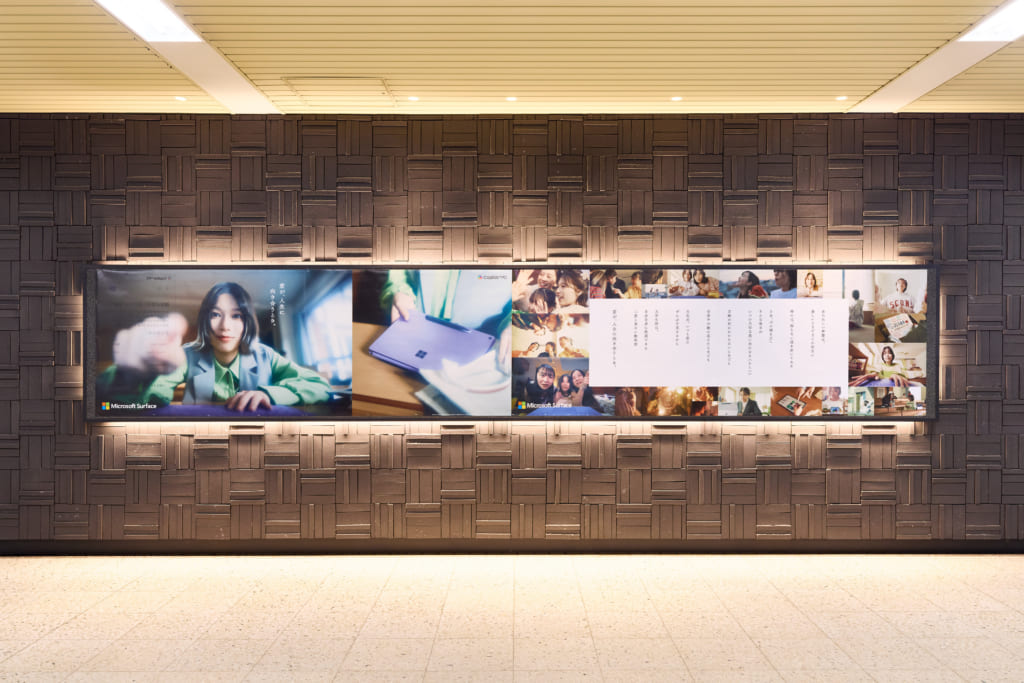 この考え方を全国主要都市の大型OOHへと展開することで、数秒の接触の中でも“Surfaceから見た世界”の空気感を瞬時に伝え、Surfaceを「AI時代に寄りそう、頼もしい相棒」としての姿を記憶として残す設計を目指した。